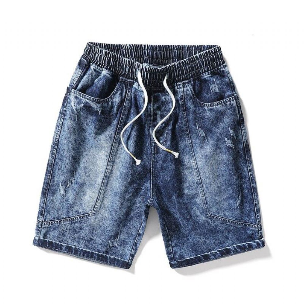 Miesten Shortsit Keskivyötärölle Pestyt Suorat Farkkushortsit