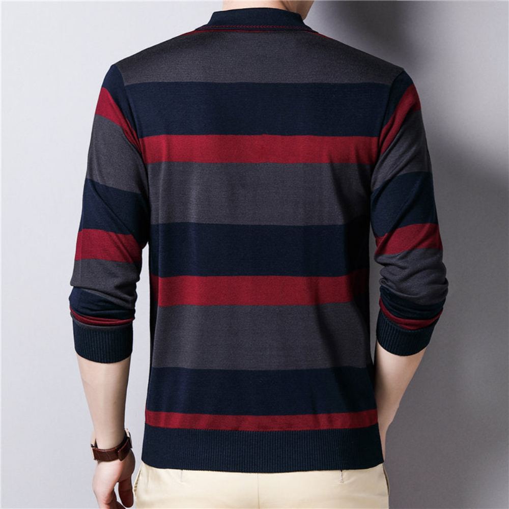 tags: Syksyinen Poolopaita, Rento Villapaita, Muotivillapaita, Miesten Neulepusero, Raidallinen Poolopaita, Alempi Kauluspaita
